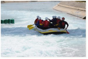 Lousios-Fluss, Peloponnes Fluss-Rafting für die Angestellten einer Automobilfirma Auf dem Floß neuen Antrieb finden. Wir boten einer Gruppe von…